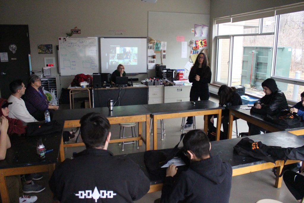 In five lessons over two months, nine students from the Kahnawake Survival School (KSS) were asked to imagine their future descendants and design a character with paper and pencil to be printed as a 3D model. They were taught the basics of 3D modelling, UV maps and texturing 3D objects, and how to rig and pose their 3D characters. The workshop concluded with a showcase of their printed characters.