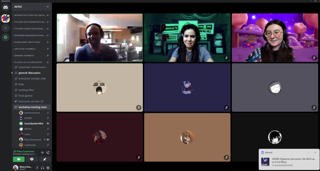 In this four day workshop, we gathered on Discord to teach the fundamentals of game design and pixel art using Bitsy! The team joined in virtually, joining a class at Lac La Croix Highschool, using a new curriculum for Bitsy games where we draw our games out on paper before jumping into the engine.