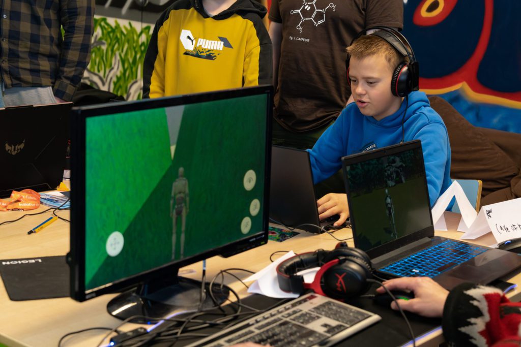 In two days, participants were able to build and sculpt terrain, customize trees and create streams! By day 5, participants were walking around beautiful landscapes, caves and fields either as little robots, an onion, or more immersively through a first-person perspective. At the end of the workshop, all of the games were showcased to the local community, where members were able to play and experience some of the games created. We were all immensely proud (and impressed!) of these young developers who were able to harness the power of Unity in such a short time.