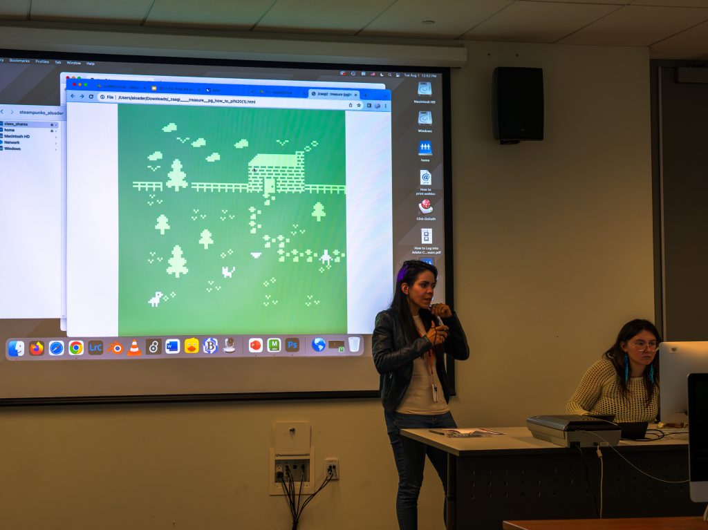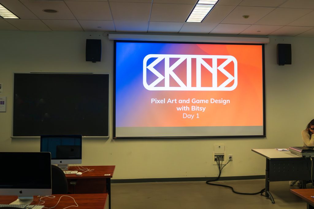 For our workshop, we introduced students to Bitsy: a browser-based game development tool for mini worlds! In two days, a group of around 22 students each worked towards making their own 8-bit explorable world. It’s an intensive workshop, but the students caught on quickly, and began building their games even before our official tutorial began! We were excited to see such a big group able to collaborate and build so many unique, tiny worlds.