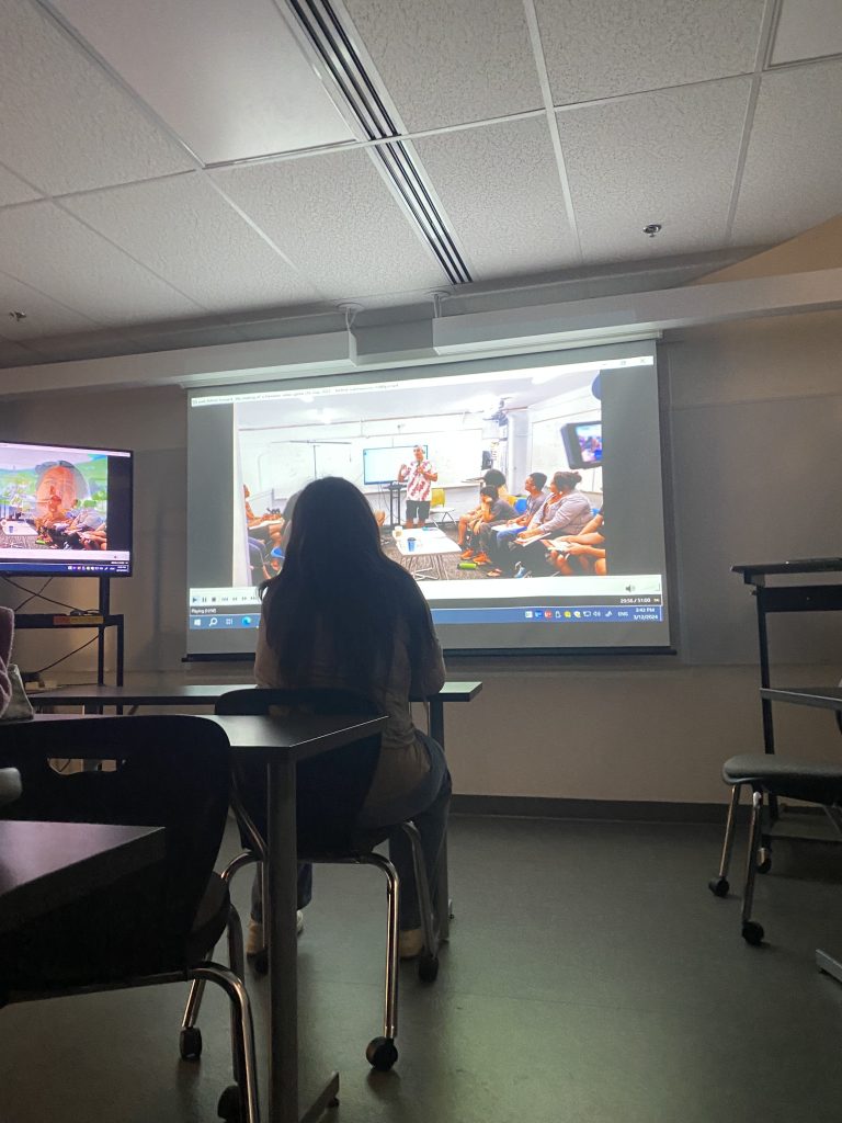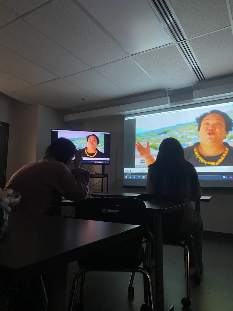 To close off the presentation, we did a small screening of Past Future Forward: The Making of a Hawaiian Video Game. This documentary, produced by our lab, shows the process of a previous Skins Workshop where participants over the course of a few weeks built a video game from the ground up. We stayed around for some questions from students, who were keen on knowing more about how we approach our research and what is involved in video game development more generally.
