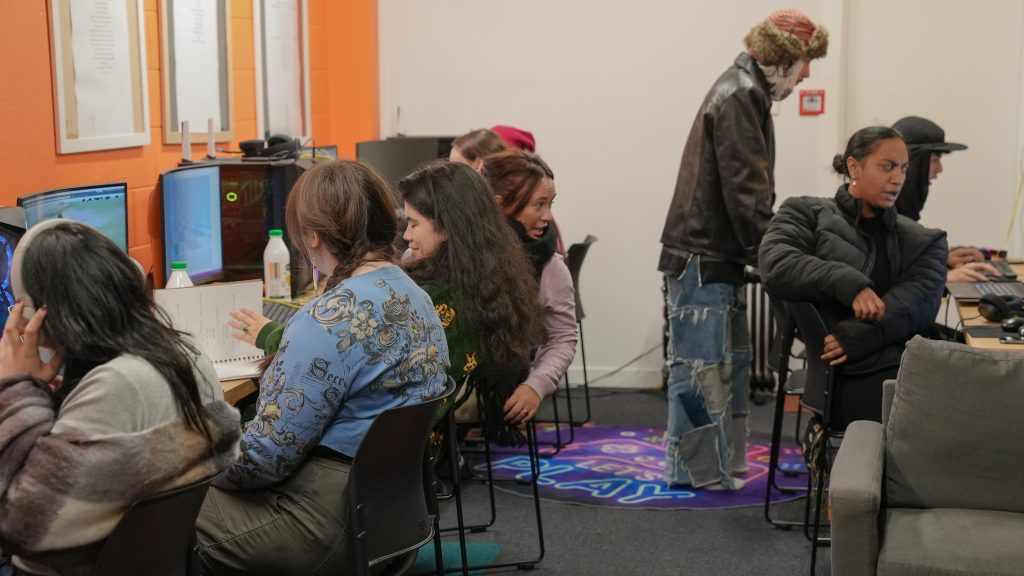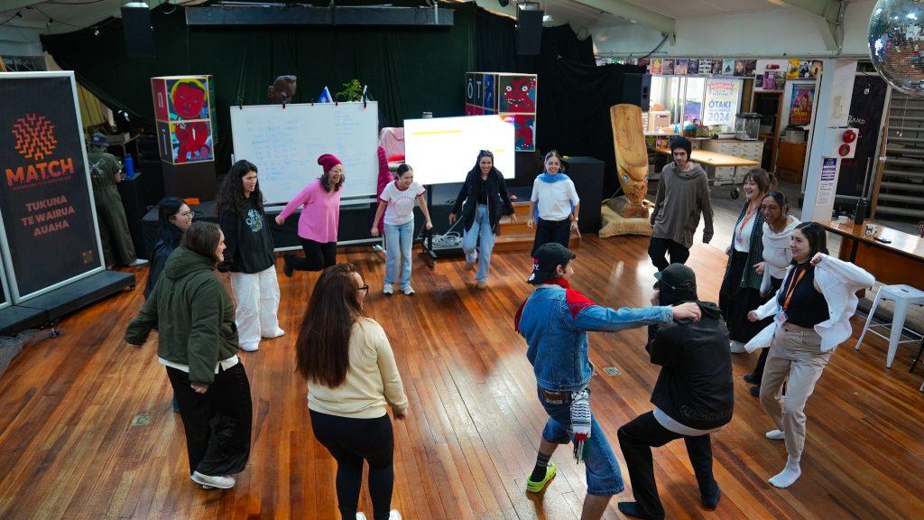 The Skins team were thrilled to partner with Māoriland Charitable Trust’s M.A.T.C.H (Māoriland Tech Creative Hub) 2024, 12-week Intensifier Course for two weeks of programming on Machinima. By the time the Skins team arrived in New Zealand, after a very long journey across the continent and ocean, the participants (or “matchies”, as they are affectionately referred to) had already completed three weeks of training, including: Whakawhanaungatanga (the process of establishing relationships, relating well to others), Storytelling and Adobe Premiere Video Editing. Small teams had already written, filmed, and edited their own short, live-action films, which were premiered upon our arrival. It was one of the first times we were teaching machinima with participants who were already familiar with scripts, camera angles and editing and we were thrilled to see how they adapted to a new, unique medium!