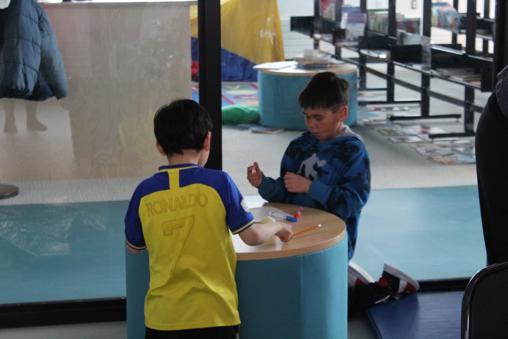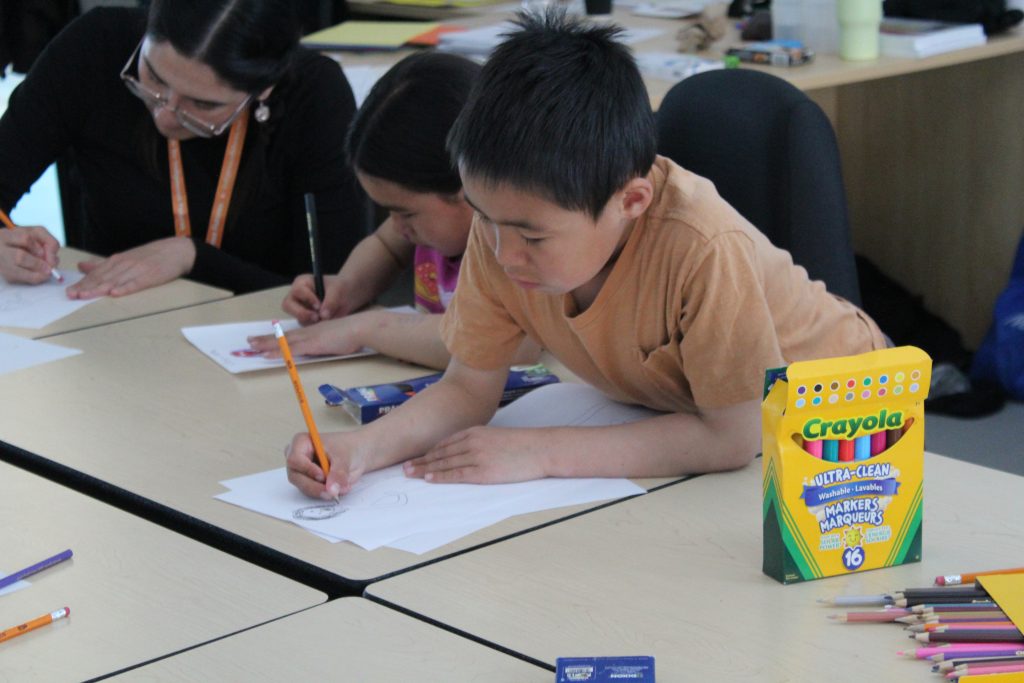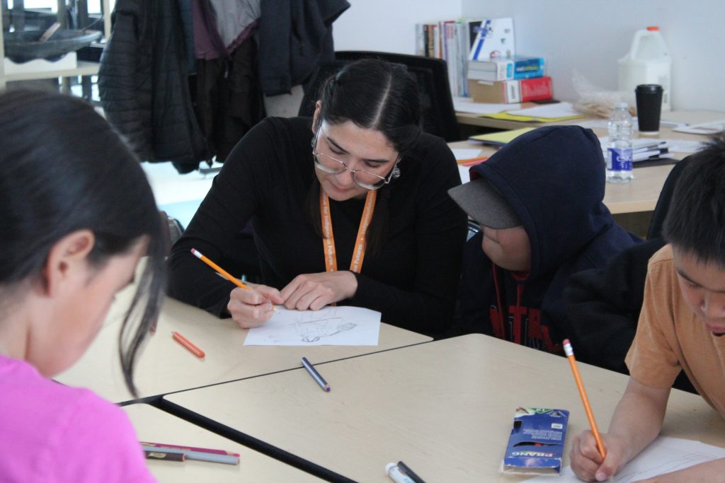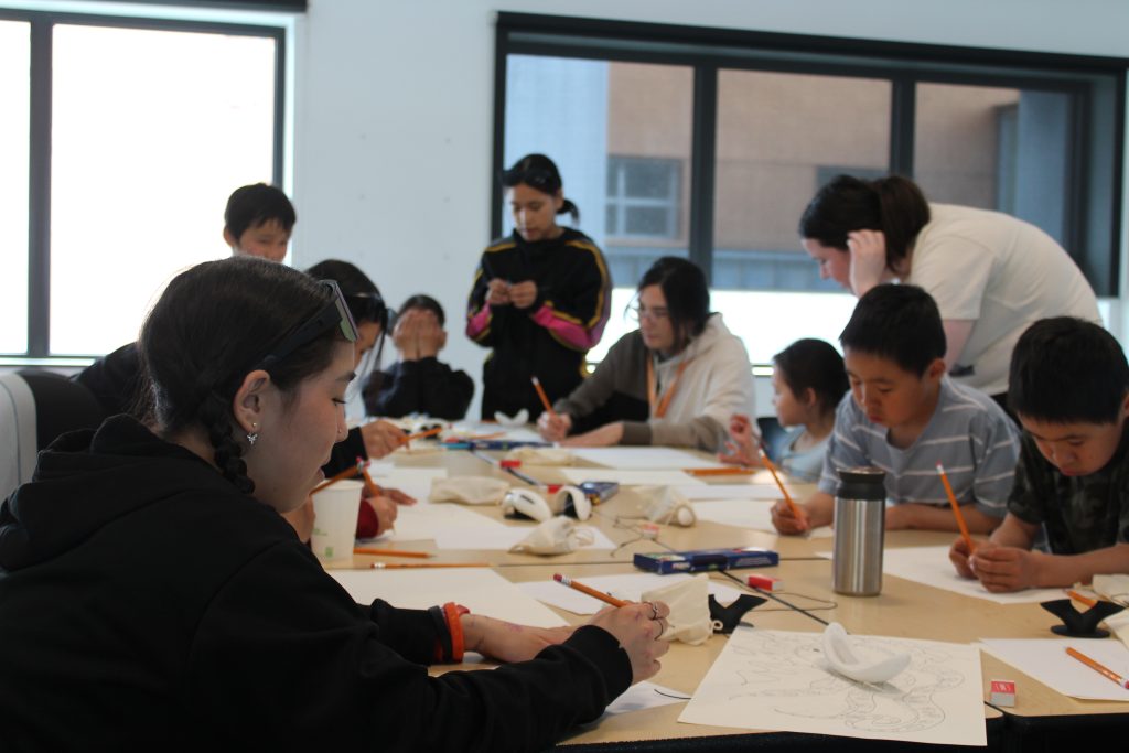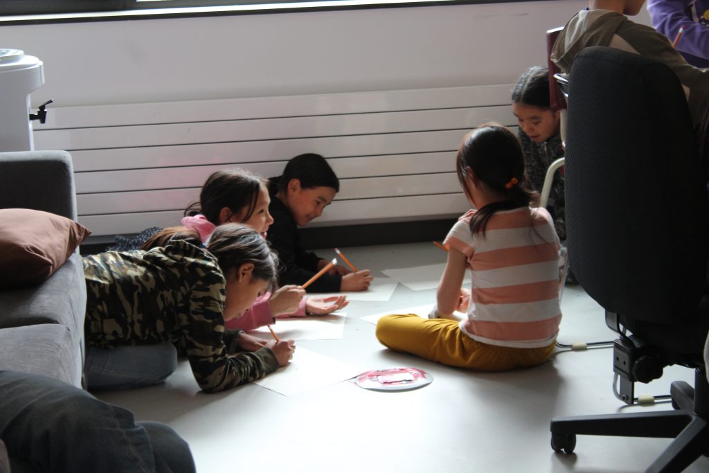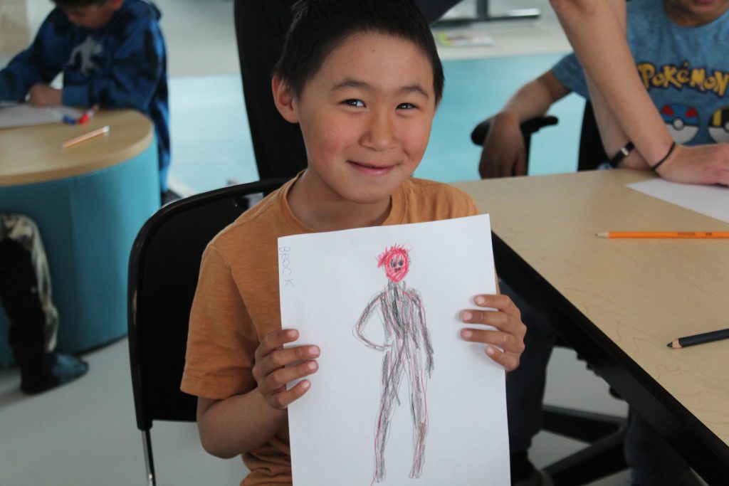 The Skins team is off to Akulivik to teach 7th Gen Character Design++ in collaboration with ESUMA! Throughout a week of workshops, we worked with the young children to learn the basics of designing video games maps and characters. Although we anticipated to begin on iPads sooner, we quickly realized the age group we are working with, ages 5-12, requires more tactile activities first!