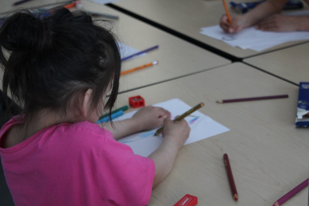 For the first 3 sessions we focused on traditional mediums, including sketching character designs on paper, sculpting with clay and creating 3D maps. For the last 2 sessions we moved on to the iPads to introduce digital media through the drawing application Procreate. Even though our participants were younger than groups we normally work with, we made sure to adjust our curriculum so that it was engaging and fun for all ages. The students had fun experimenting with Procreate and made some beautiful character designs and multi-media paintings.