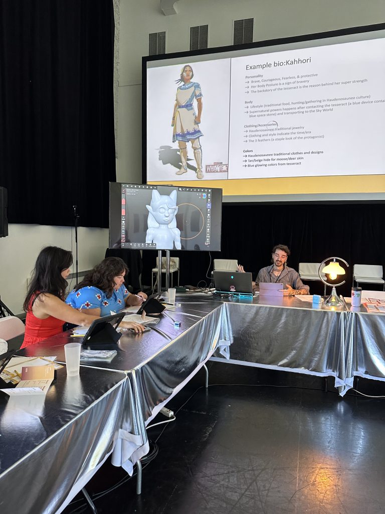 The second half of our workshop was dedicated to teaching the basics of Nomad Sculpt, a versatile iPad application for 3D modelling. The participants started with a premade body base to help them focus on customization and bringing their character design to life. As a group we went through each step of the process, learning the basics 3D modelling while slowly building their characters. In the end, the participants not only showed strong interest in 3D modelling but also created imaginative characters that reflected their cultures and visions of the future.